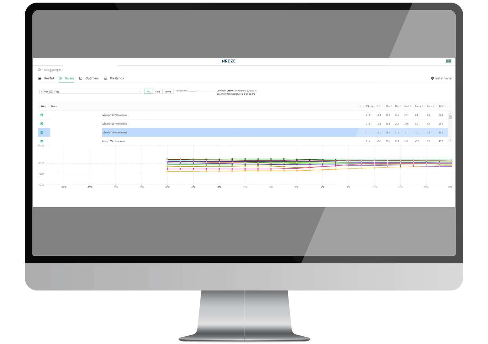 Nrlyze Module Balance identifies imbalance in the heating system and how severe it is. For each space that is out of balance, the excess/undercapacity is reported. In properties with a large imbalance, this is remedied by adjusting the entire heating system including all radiators. In properties with limited imbalance, our technicians can restore balance through less extensive local measures.